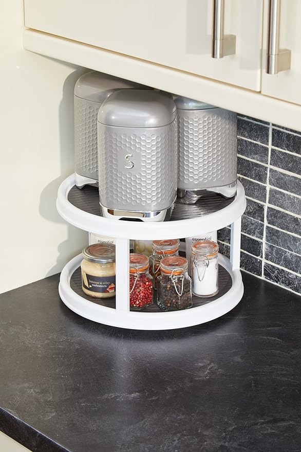 Copco Basics Plastic 2-Tier Lazy Susan-Style Kitchen Worktop and Shelf Organiser,White/Grey, 30 cm