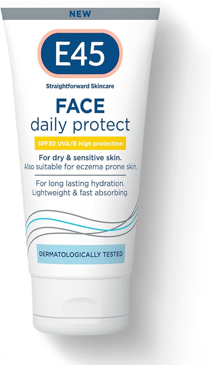 LONG-LASTING DAILY HYDRATION FOR DRY SKIN, SENSITIVE SKIN AND ECZEMA PRONE SKIN – E45 Daily Protect Moisturiser provides instant and long-lasting intensive hydration with a 24-hour moisturising effect. It is quickly absorbed into the skin, with a light-weight texture that won’t clog or block pores. Perfume-free and vegan, our formulation is also dermatologically tested.
